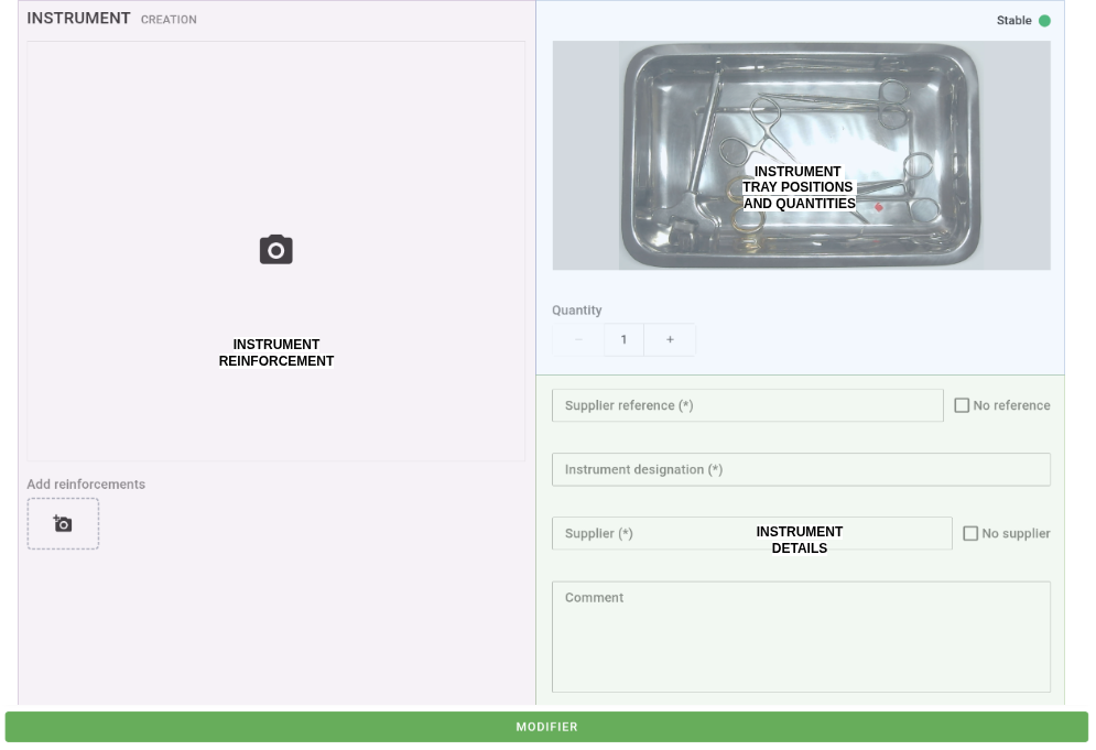 Instrument Reinforcement area correspond to where we can take multiple pictures of an instrument to enhance its recognition. There is 3 states depending on the ongoing actions :